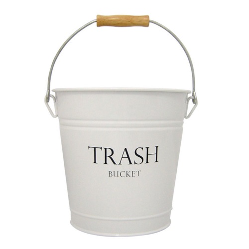 Get rid of all the trash within seconds with this Trash Bucket. Made from sturdy metal construction, this trash bucket holds up to 3.3 gallons of trash at any given point of time. A high gloss white finish and black lettering for easy identification, this garbage pail comes with a metal handle fully equipped with a wooden handle for easy portability. Besides, this trash container is great for use in the bathroom, bedroom, den or a patio. Bring home this trash bin today and welcome yourself to a clean and dirt-free home.